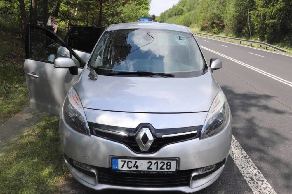 Z kamionu odletěl kámen. Rozbil čelní sklo protijedoucího vozidla
