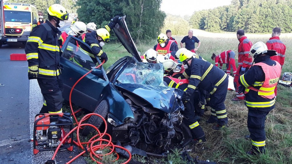 Vážná nehoda u Jablonného. Kamion se čelně střetl s autem, řidič je v kritickém stavu