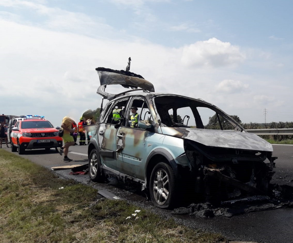 Na dálnici u Turnova shořelo auto. Popáleného člověka transportoval vrtulník do nemocnice