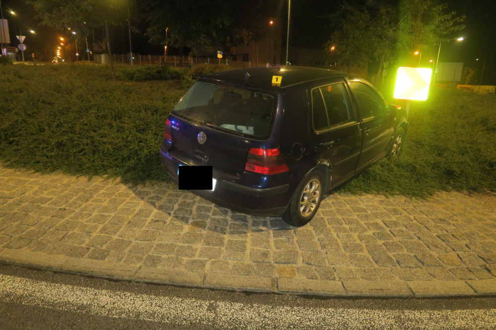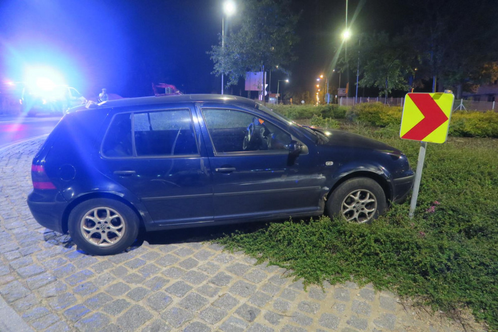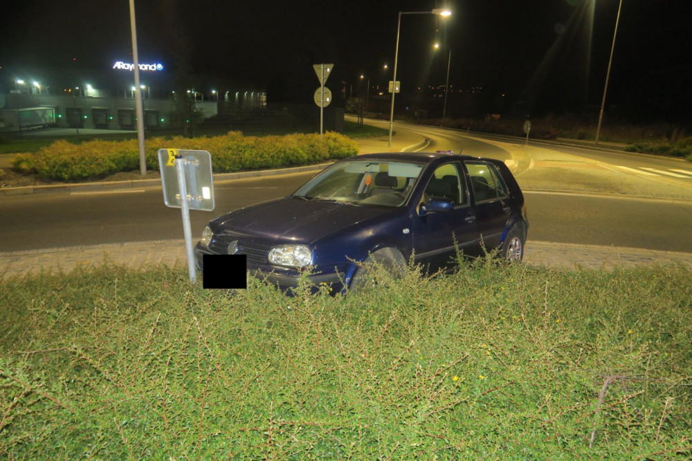 Pod vlivem nezvládla řízení. Řidička vjela na kruháč a narazila do značky