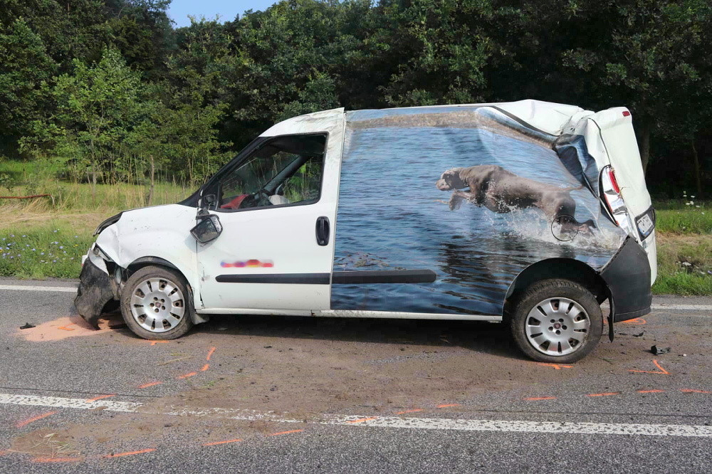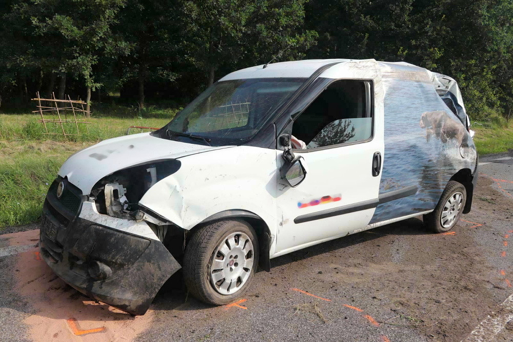 Kvůli motorkáři musela řidička strhnout řízení, auto sjelo do příkopu a převrátilo se přes střechu