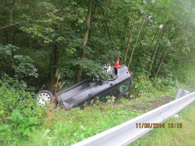 Řidička otočila svou Octavii na střechu. Foto: Policie ČR