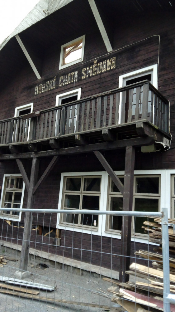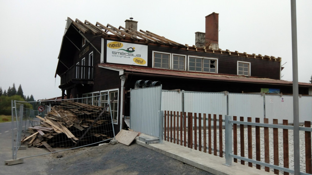 Bourání chaty na Smědavě. Na jejím místě vyroste wellness hotel