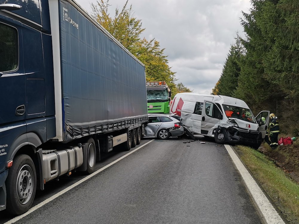 Hromadná nehoda uzavřela silnici u Svoru. Dva zranění