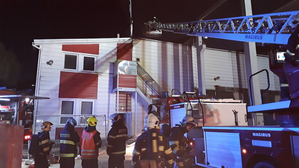 Požár haly v Novinách pod Ralskem. Hasiči oheň zlikvidovali