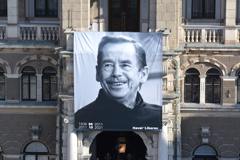 Vandal si vyhlédl plachtu s exprezidentem Havlem. Chtěl ji postříkat barvou, trefil fasádu radnice
