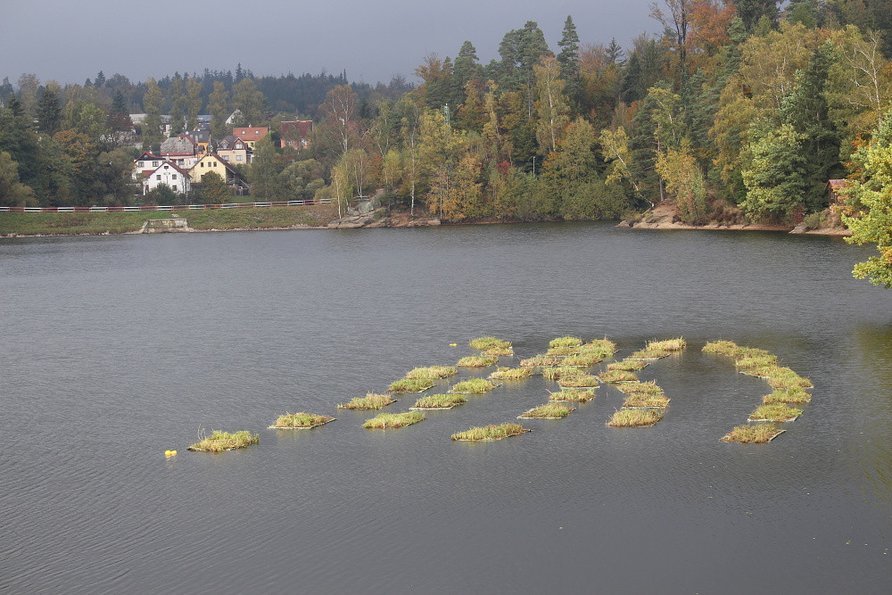 Na jablonecké přehradě plují trsy trávy. Jde o jedinečný způsob čištění vody