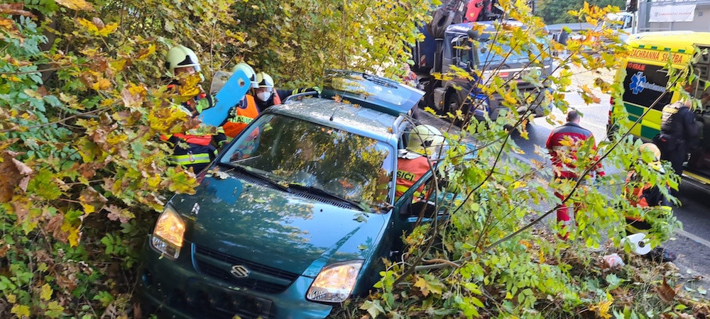 Srážka náklaďáku s autem v Jablonci. Dva zranění, jednoho museli hasiči z auta vyprostit