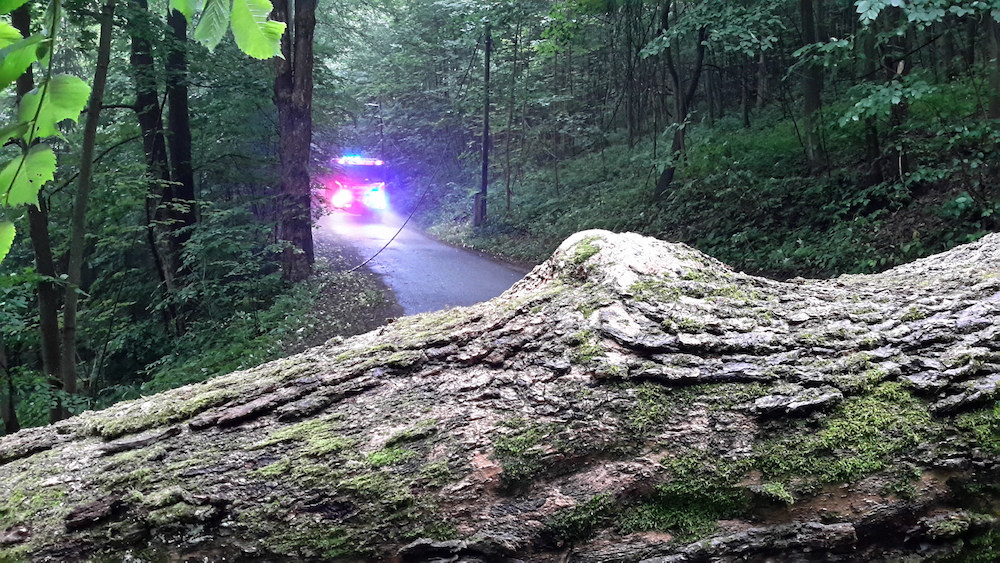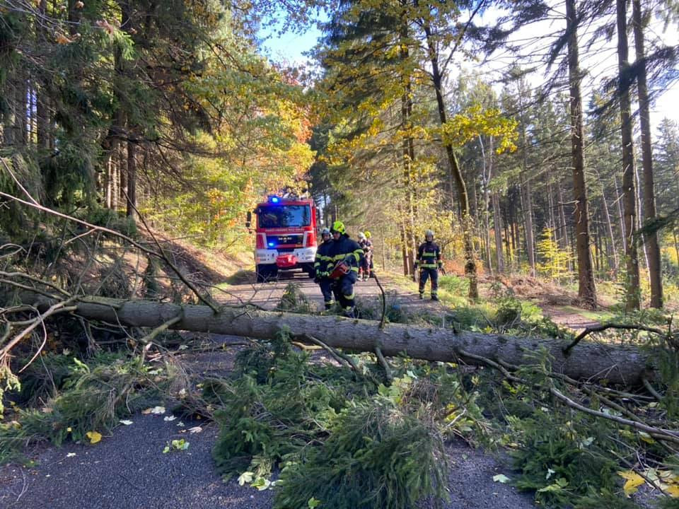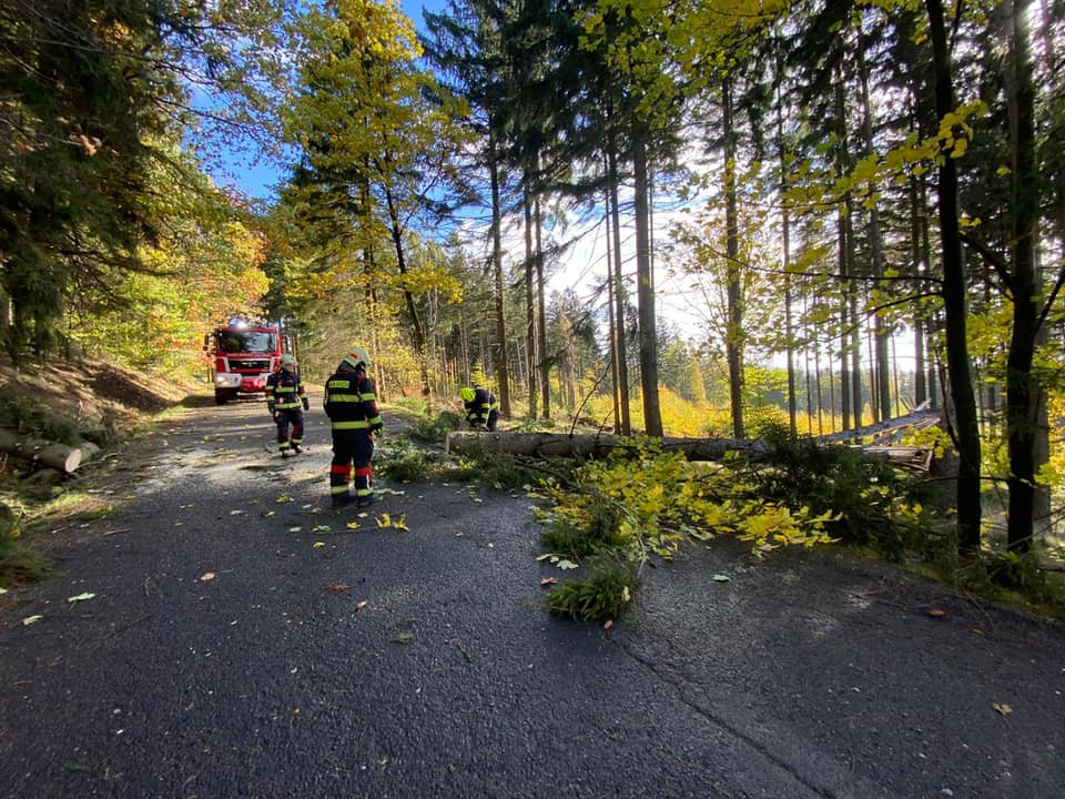 Silný vítr láme stromy. Frýdlantsko je bez proudu, vlak narazil do stromu