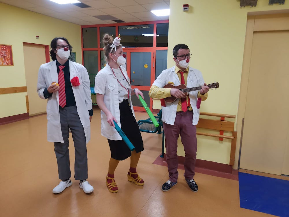 Zdravotní klauni slaví 20 let existence. Včera přinesli symbolických 20 minut radosti lékařům a sestrám