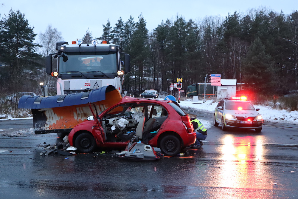 Při střetu sypače s osobním automobilem zahynul řidič. Policie nejspíše přizve soudního znalce