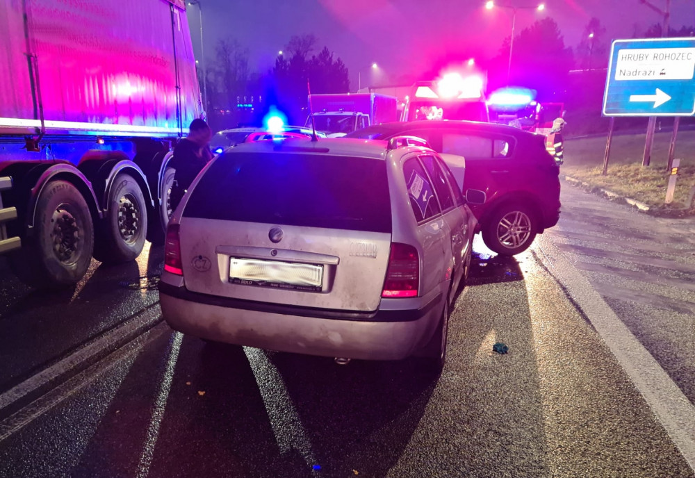 Komplikace v Turnově. Na průtahu města se staly dvě nehody současně