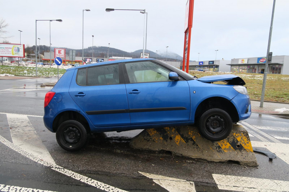 Řidič se s autem zasekl na betonové zábraně. Dvacet minut nikdo nepomohl