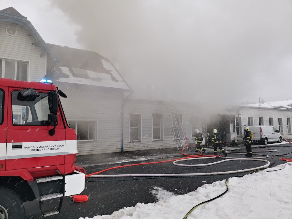 Při požáru autodílny v Jablonci se zranil hasič. Jeden člověk se nadýchal zplodin