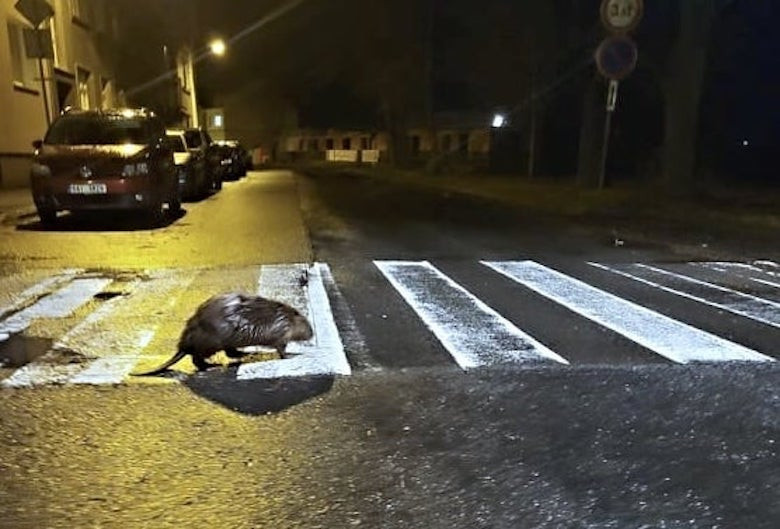 Po České Lípě se procházel bobr. Silnici přešel po přechodu