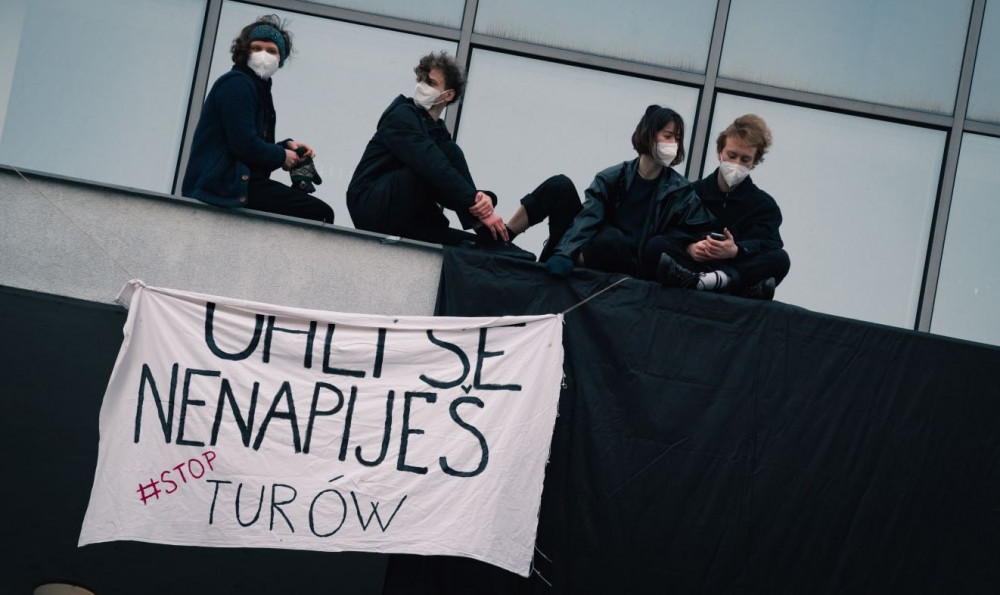 Aktivisté zastavili přívod vody na ministerstvo. Upozorňují na těžbu v dole Turów