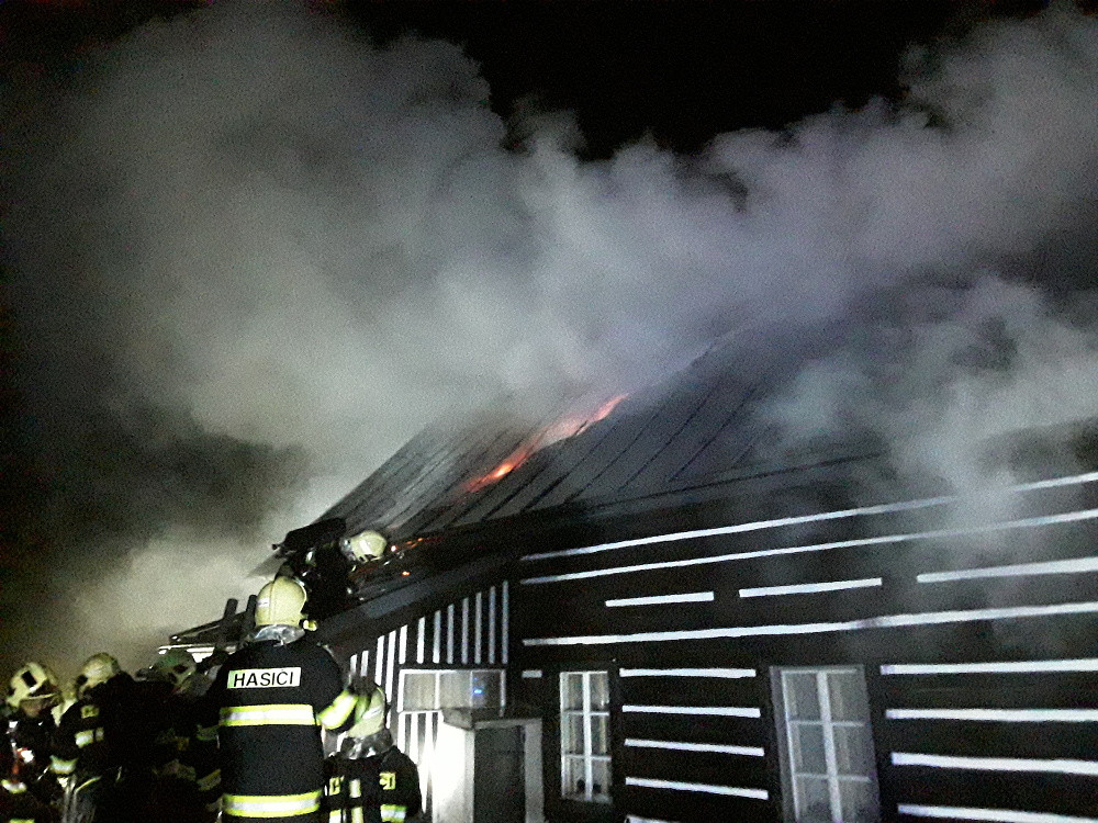V noci zasahovali hasiči u požáru roubenky na Polevsku. Vyhlášen byl druhý stupeň poplachu