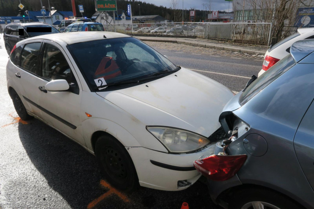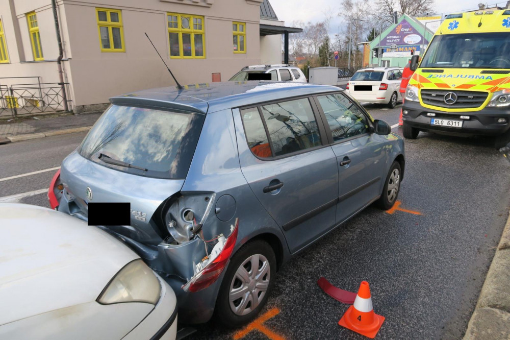 Řidič na mokru na křižovatce nedobrzdil. Naboural auto před sebou, kde se zranili tři lidé