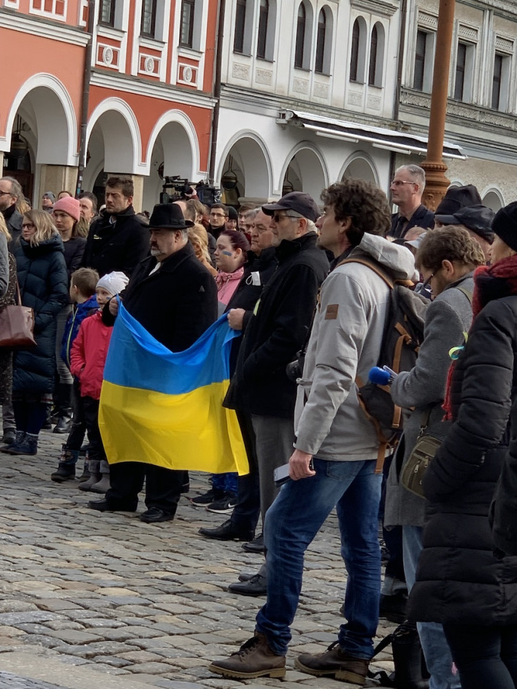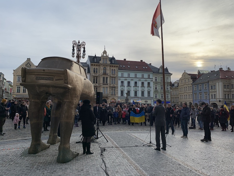 Jsme s vámi! U radnice se na podporu Ukrajiny sešly stovky lidí