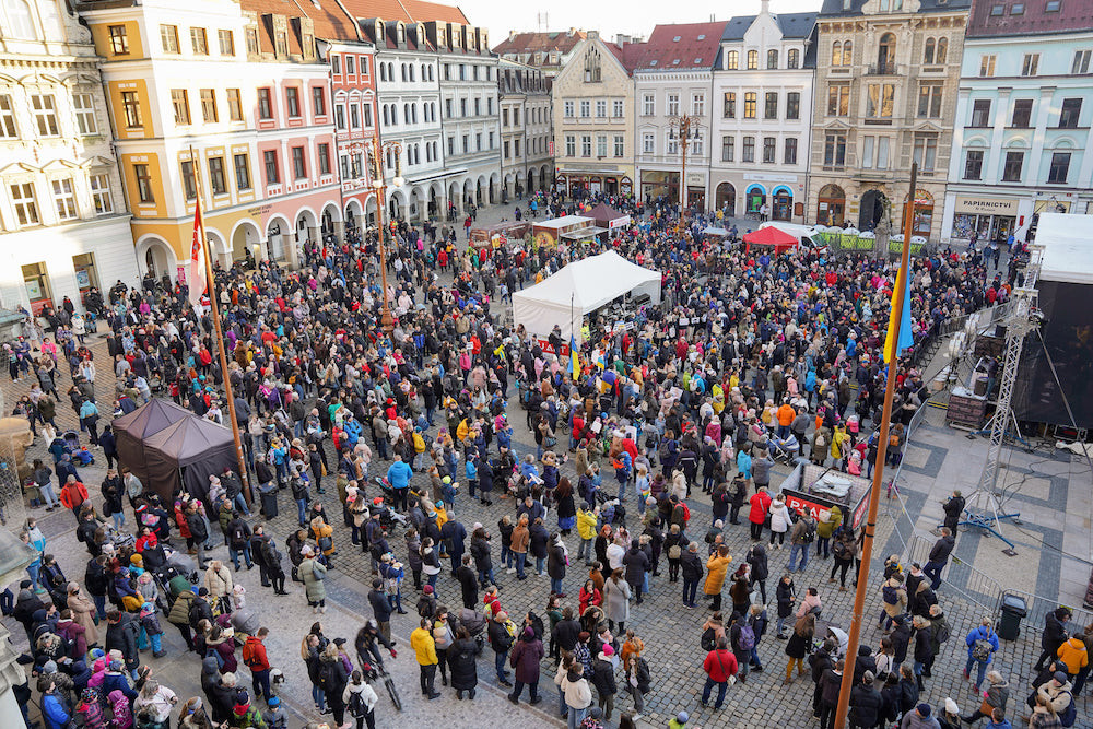 Svobodu a slávu Ukrajině, znělo centrem Liberce, které zaplnily stovky lidí