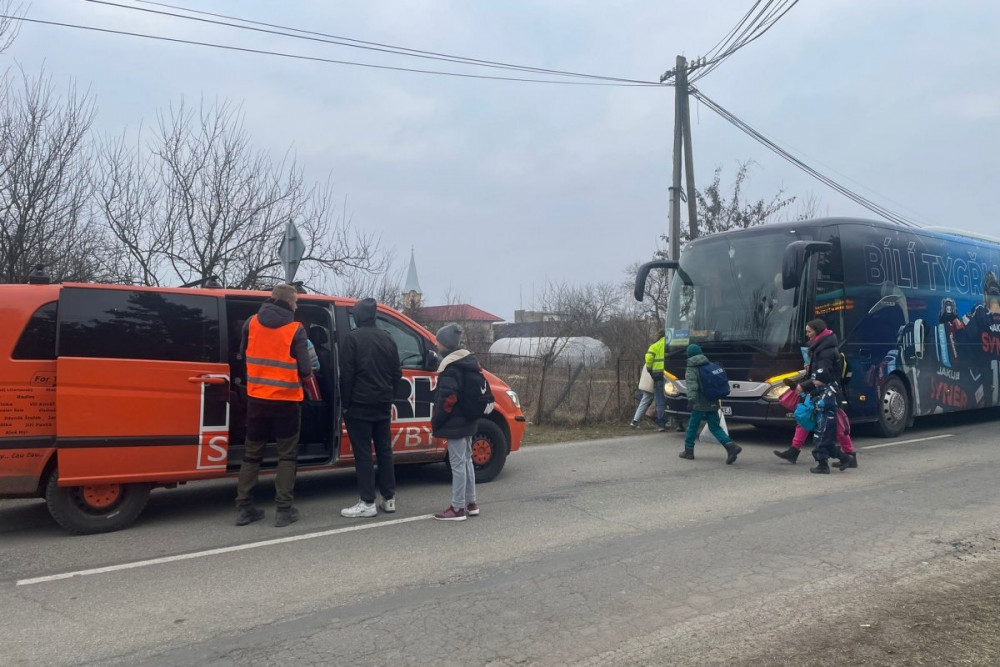 Normálně v něm jezdí hokejisté. Teď tygří autobus přivezl padesát uprchlíků z Ukrajiny