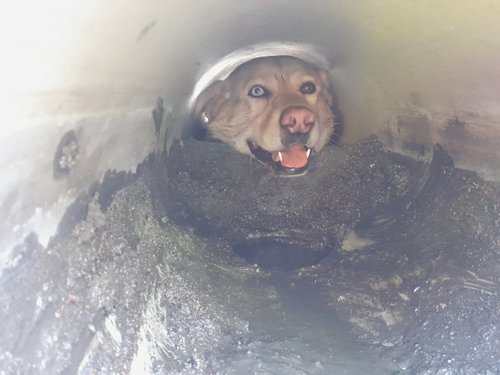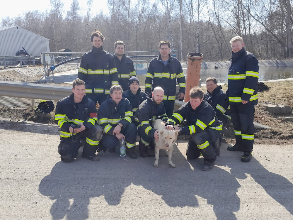 Pes spadl do požární nádrže, nakonec uvízl ve vtokové rouře