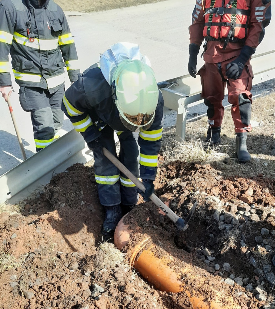 Pes spadl do požární nádrže, nakonec uvízl ve vtokové rouře a nemohl ven