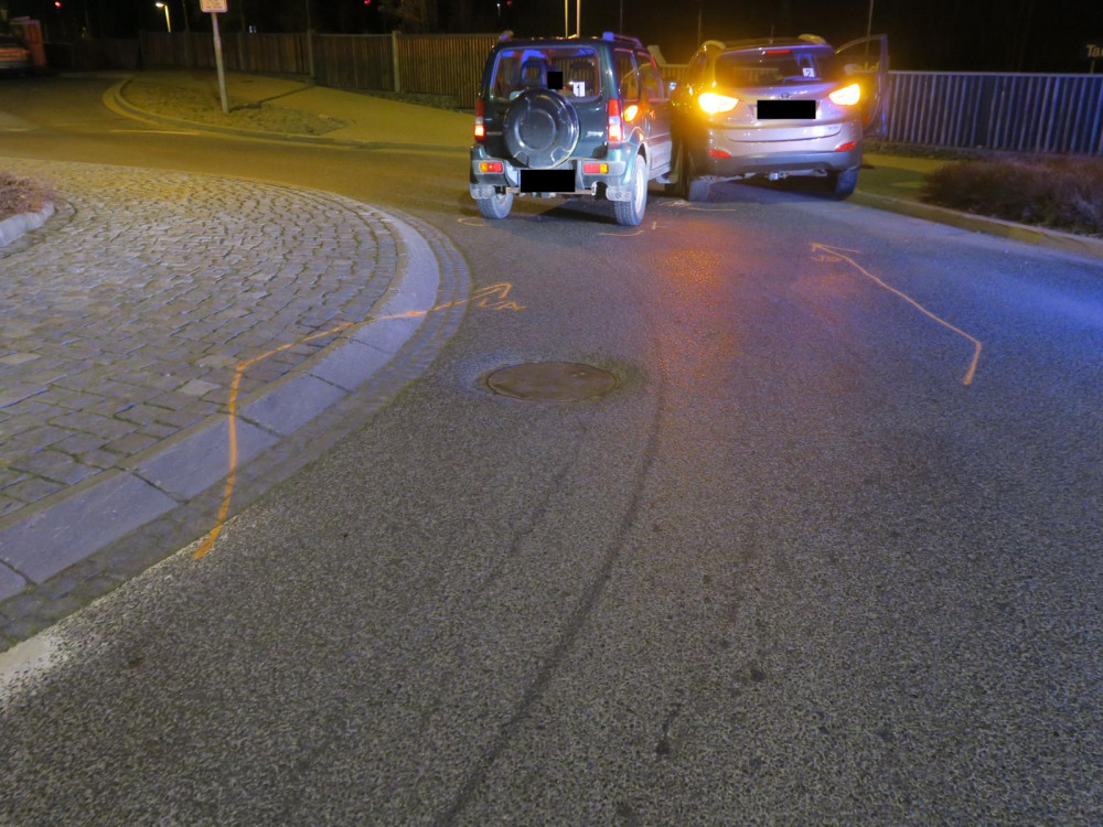 Řidička zastavila na kruhovém objezdu, poté se znovu rozjela a narazila do projíždějícího vozidla.