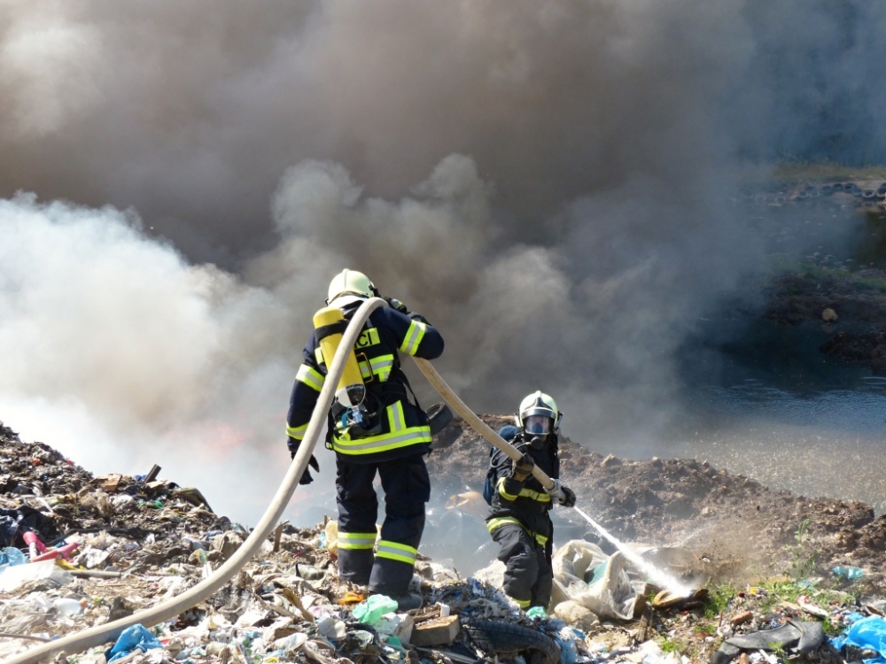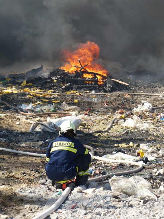 Požár skládky v Druzcově
