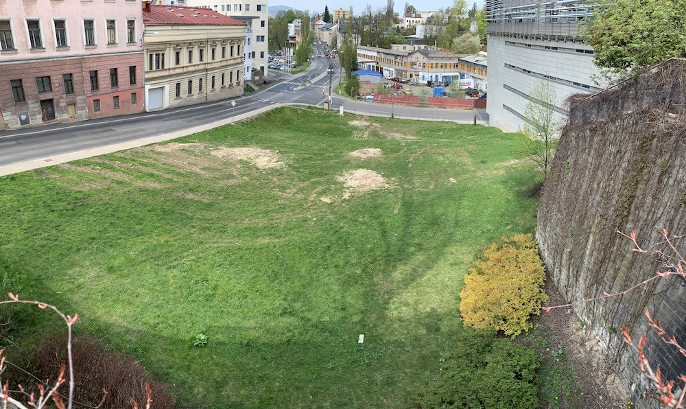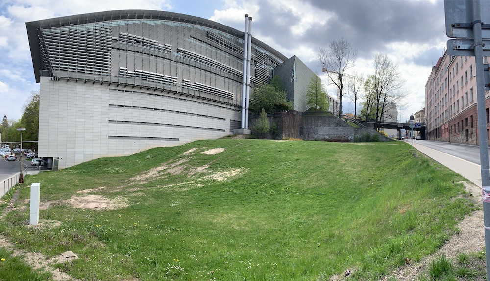 Jabloň ve skleněném tubusu. Pod knihovnou má vyrůst památník policistům, kteří zemřeli ve službě