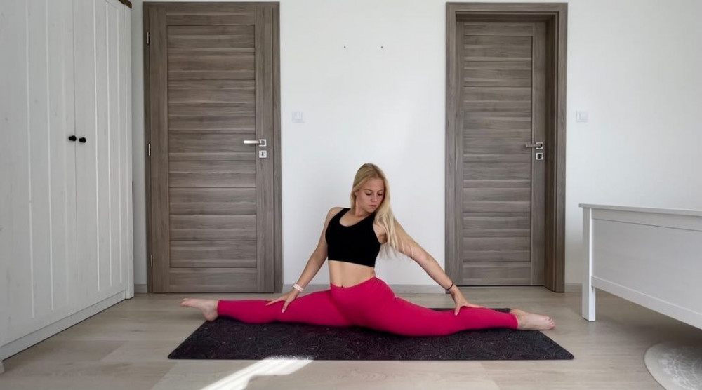 Při cvičení kombinuje prvky jógy a gymnastiky s principy pilates.
