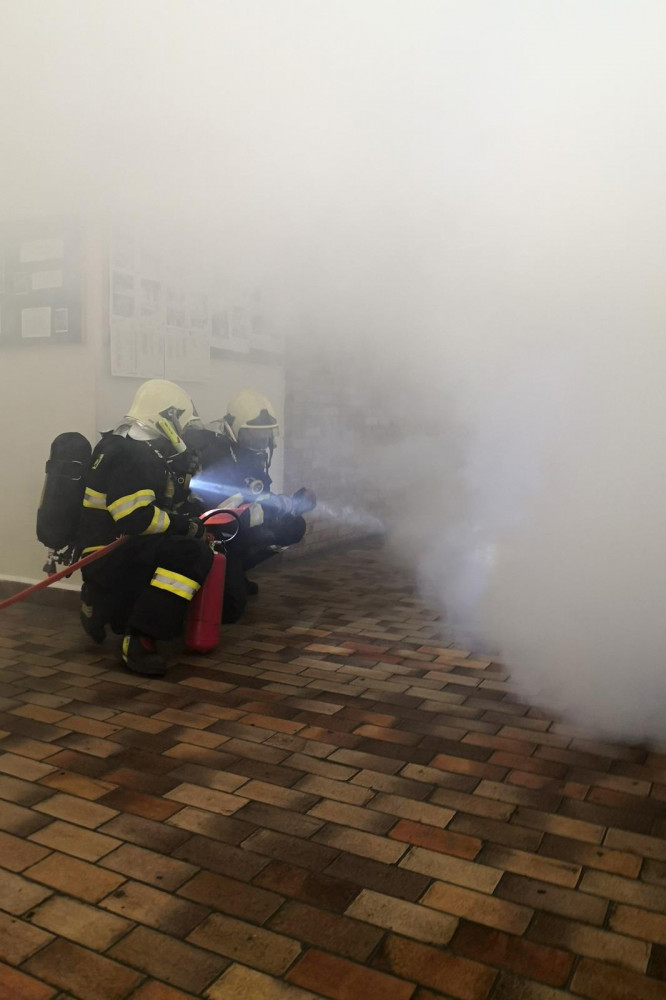 Studený kouř, pohřešované osoby i první pomoc. Hasiči cvičili požární zásah na školách v kraji