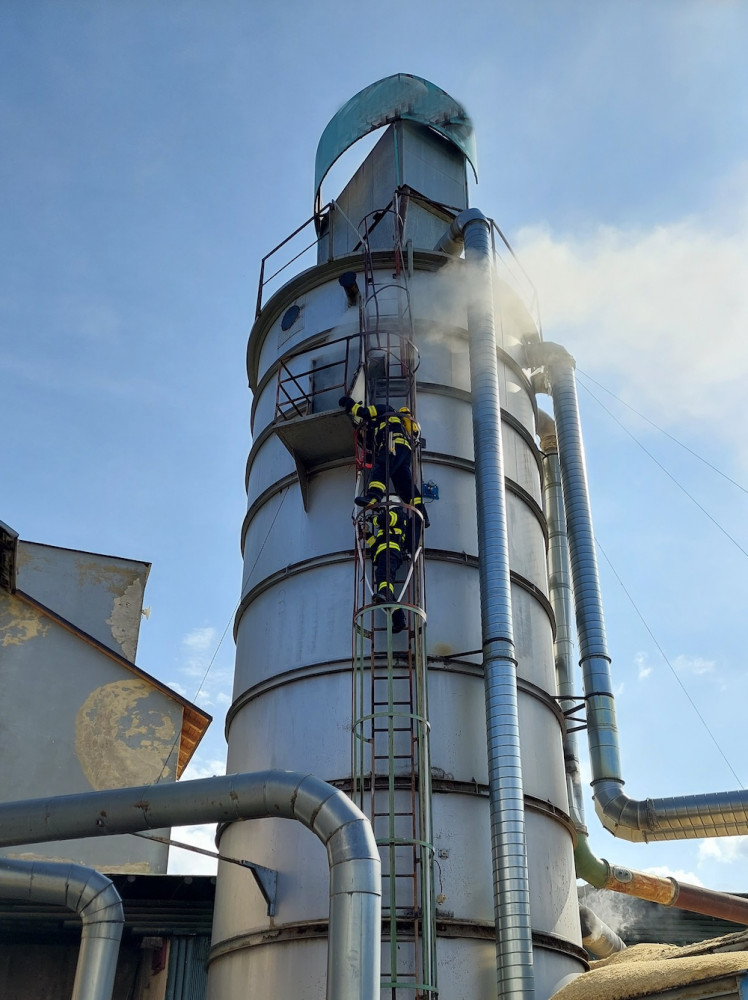 Hasiči likvidují v průmyslovém objektu v Horce požár sila s pilinami