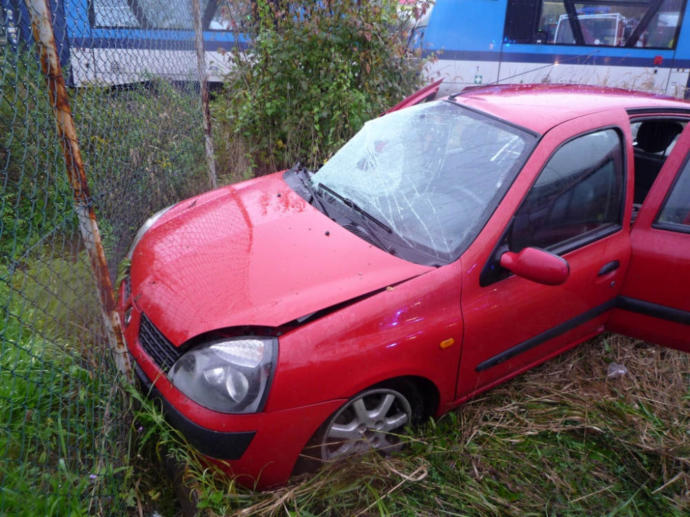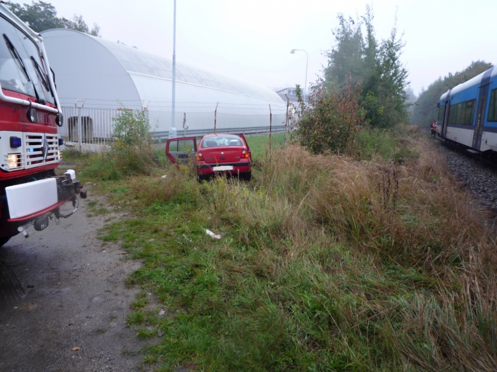 V Doubské ulici se střetl vlak s autem. Tři zranění. Foto: HZSLK