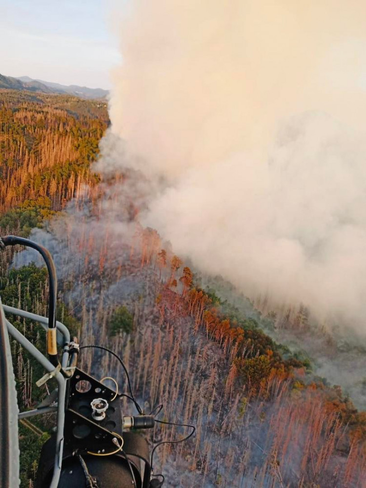 VIDEO: Nic většího než požár v Českém Švýcarsku jsem nikdy neviděl, říká armádní pilot