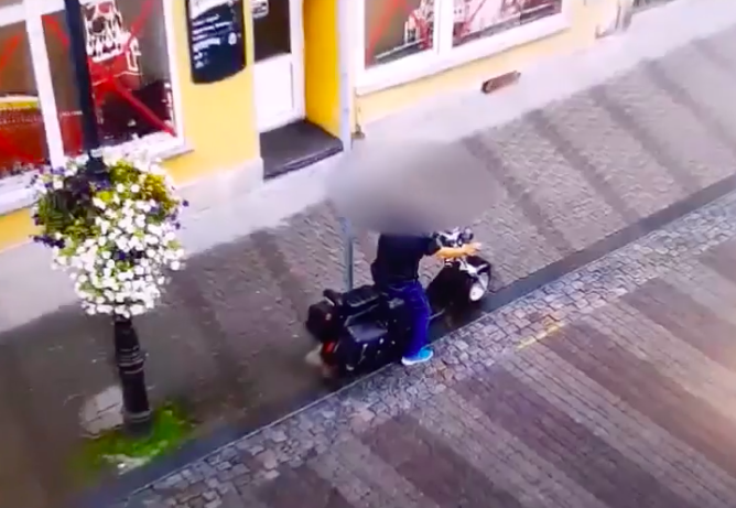 Chtěl odjet z centra města. Zapomněl, že skútr má zamčený ke značce