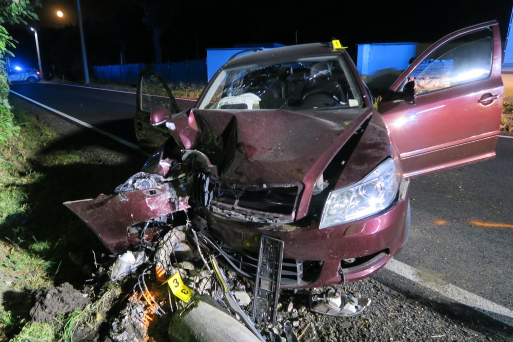 Spadla mu žvýkačka za tričko. Nepozorný řidič narazil do sloupu elektrického vedení