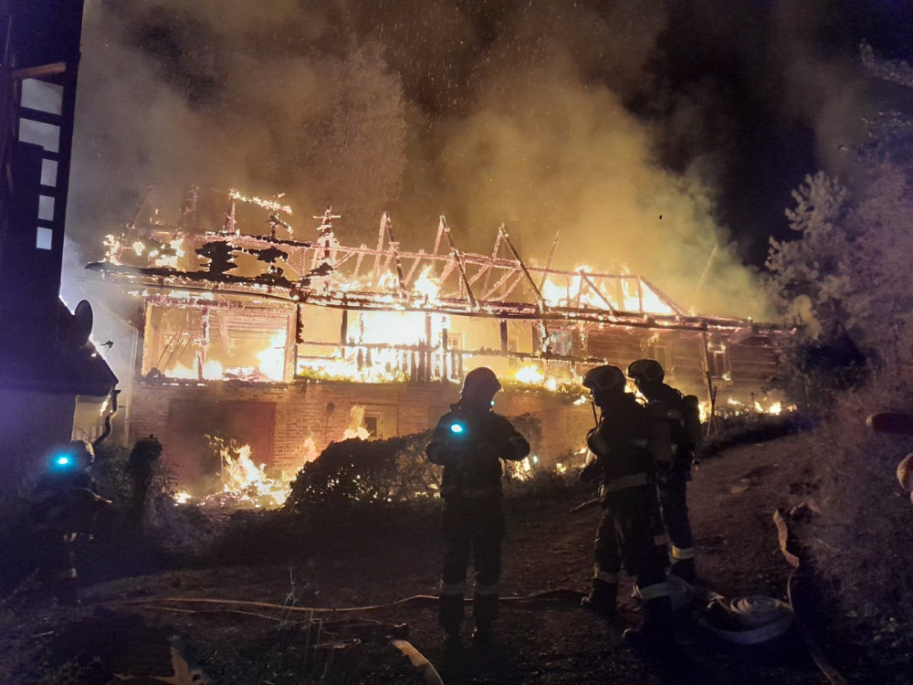 V Železném Brodě hořela v noci roubenka. Při příjezdu hasičů už byla celá v plamenech