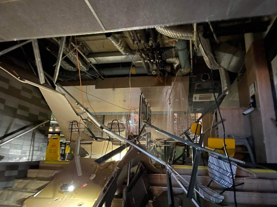 Ve Foru se v McDonalds propadl sádrokartonový podhled. Nevydržel přívalový déšť