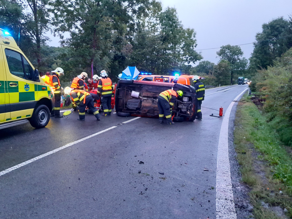 Ranní nehoda u Frýdlantu uzavřela silnici. Auto se převrátilo na střechu