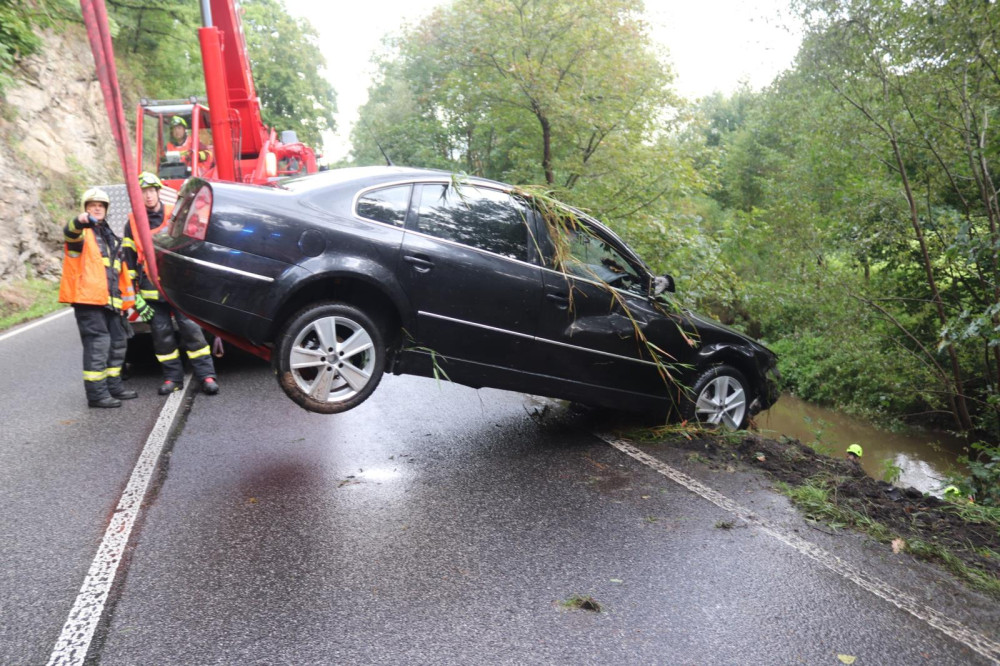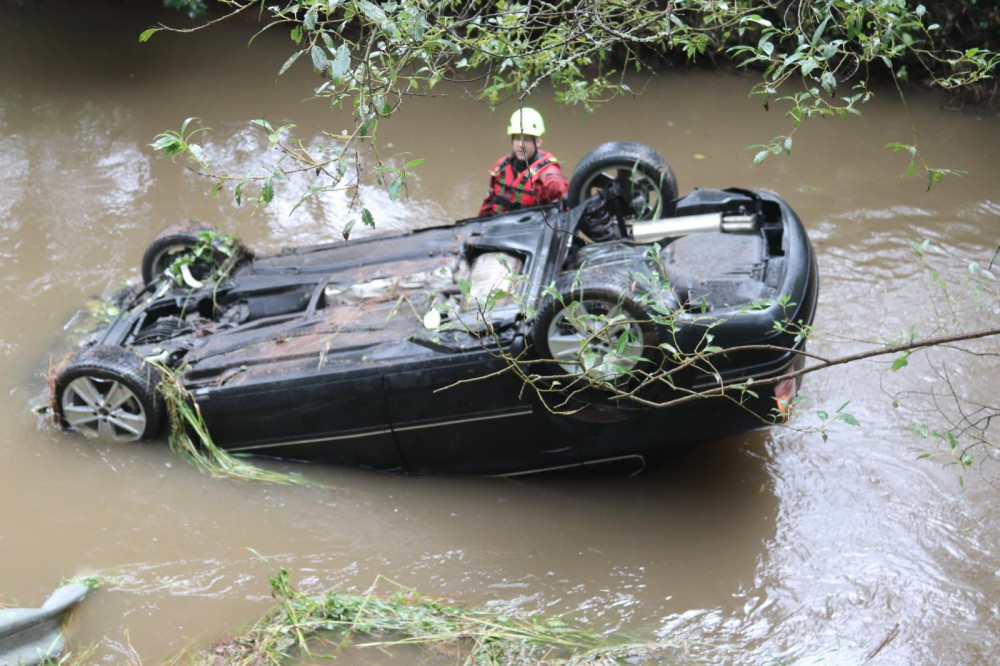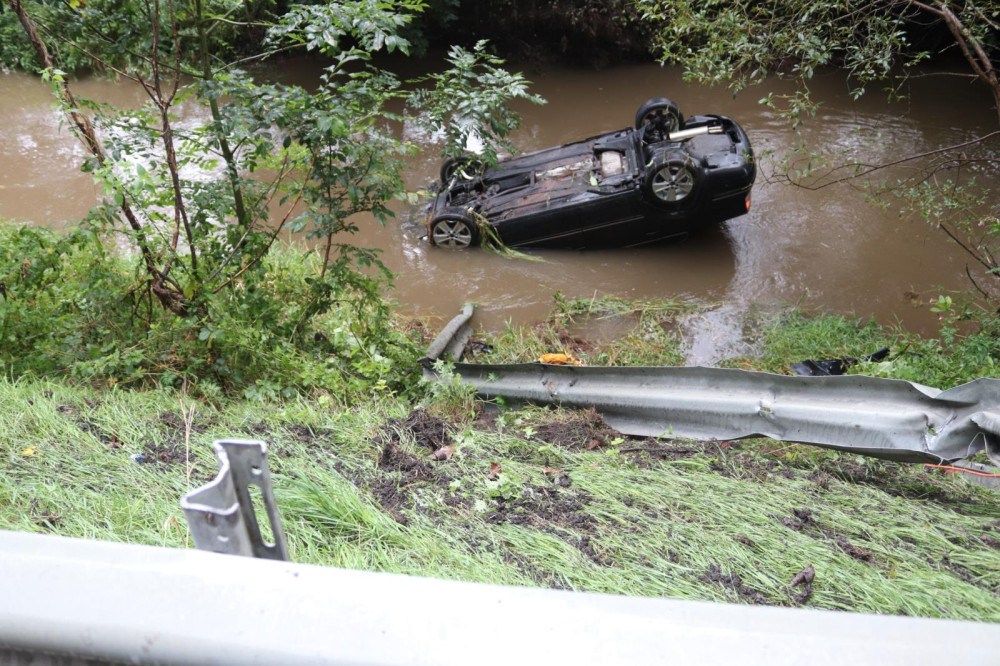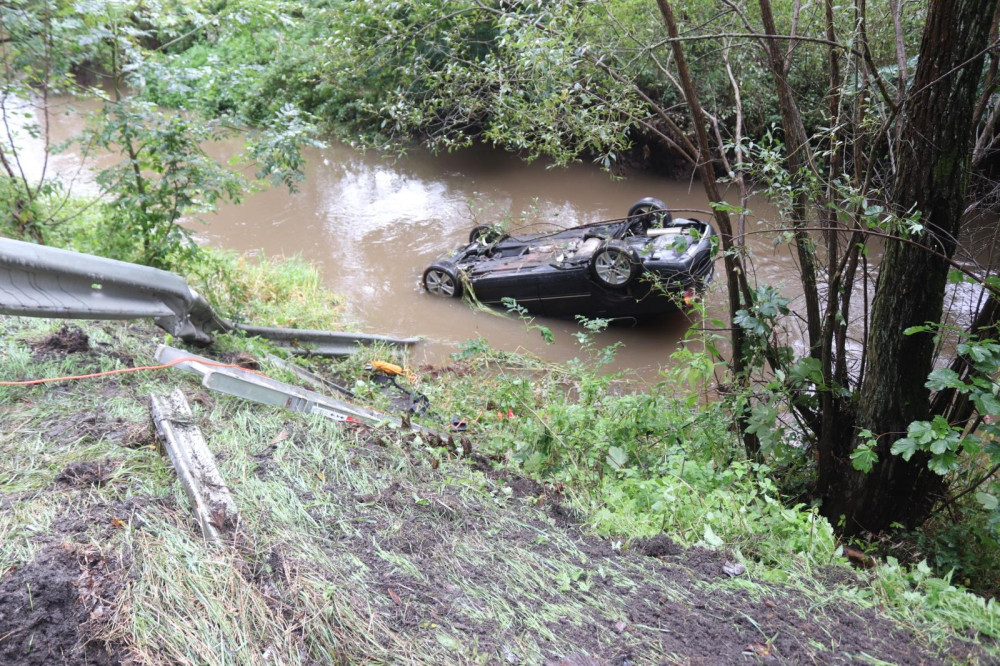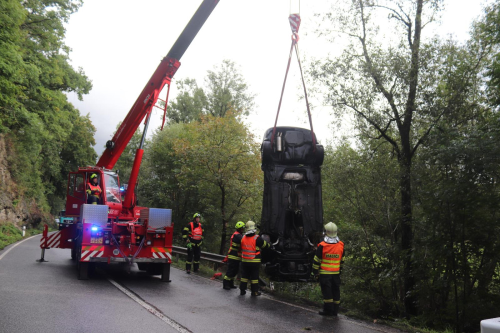 Řidička na Semilsku dostala smyk a skončila v řece. Převrátila se na střechu auta