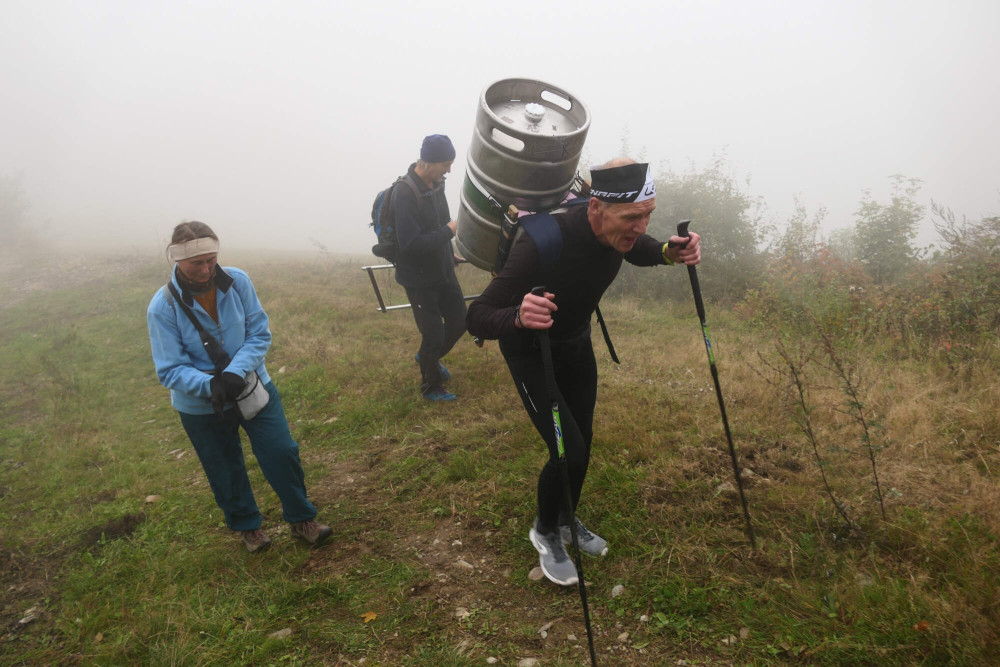 Vynášení sudů na Ještěd se zúčastnilo třináct statečných. V osobním rekordu vyhrál Petr Schneider