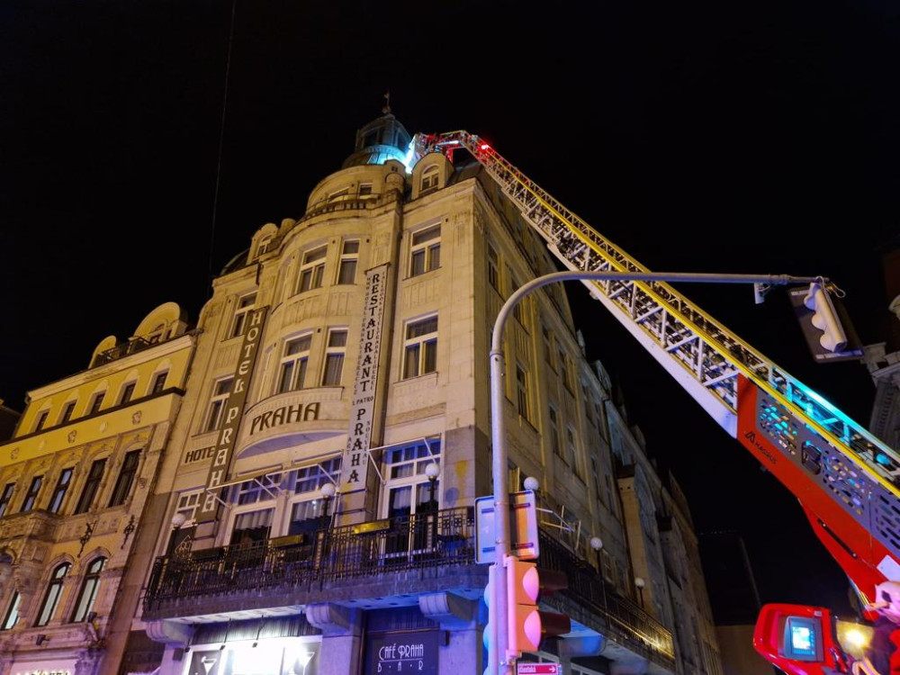 VIDEO: V centru Liberce zachraňovali hasiči a policisté muže z budovy hotelu Praha