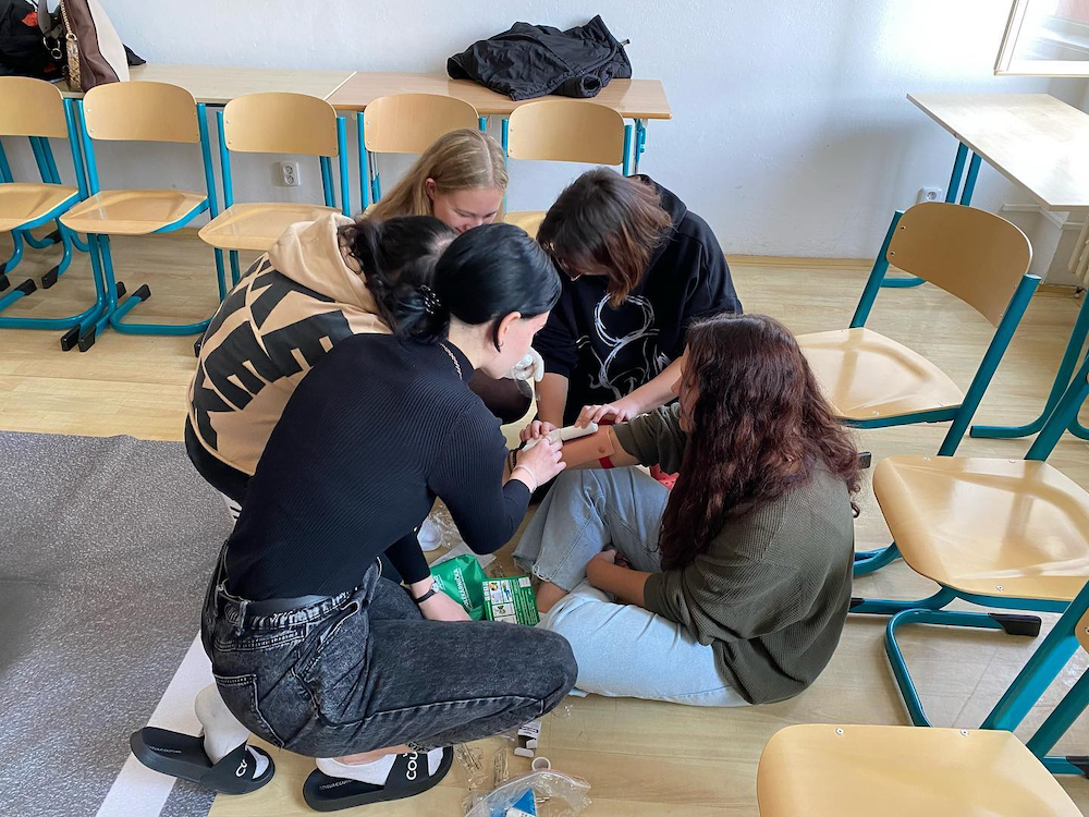 Studenti zachraňují životy při střetu osobního auta s koloběžkářem. Neumírej zbytečně!