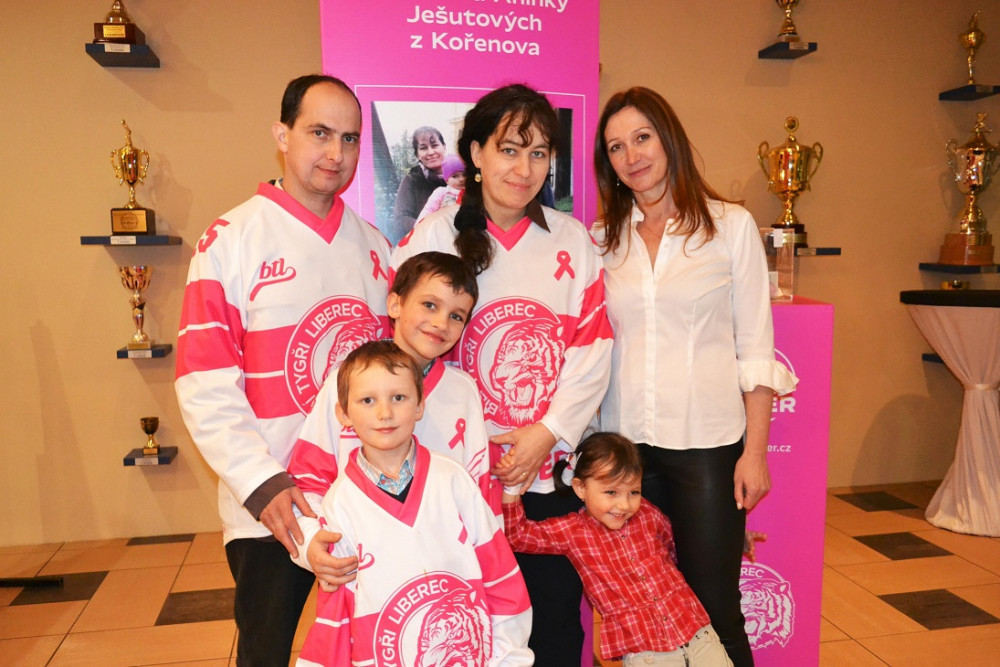 Rodina Ješutových s představitelkou nadace Evou Syrovátkovou v roce 2019, kdy sbírka odstartovala