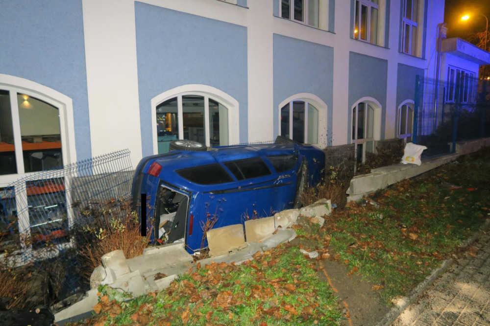 Mladý řidič nezvládl jízdu a havaroval. Prorazil plot a auto skončilo na boku opřené o dům