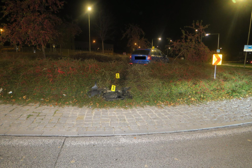 Řidič v Jablonci nad Nisou narazil do středu kruhového objezdu. Chtěl se vyhnout kočce