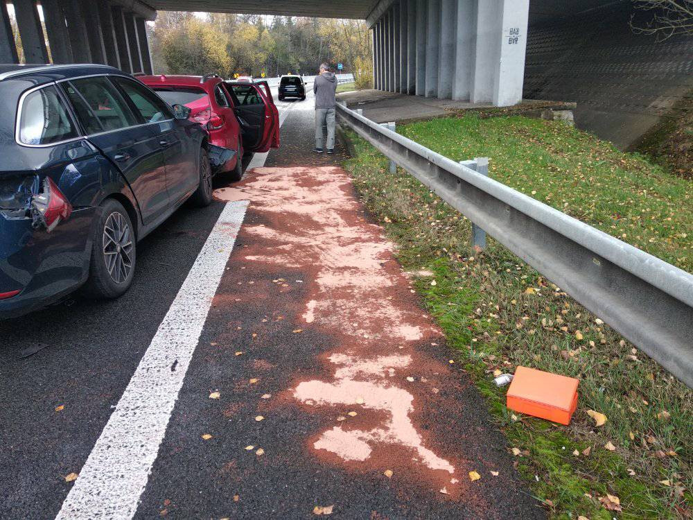 Na nájezdu na silnici 10 u Turnova se srazila čtyři auta. Tři lidé se zranili