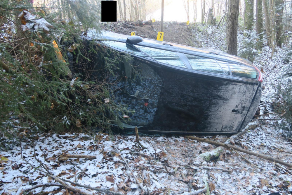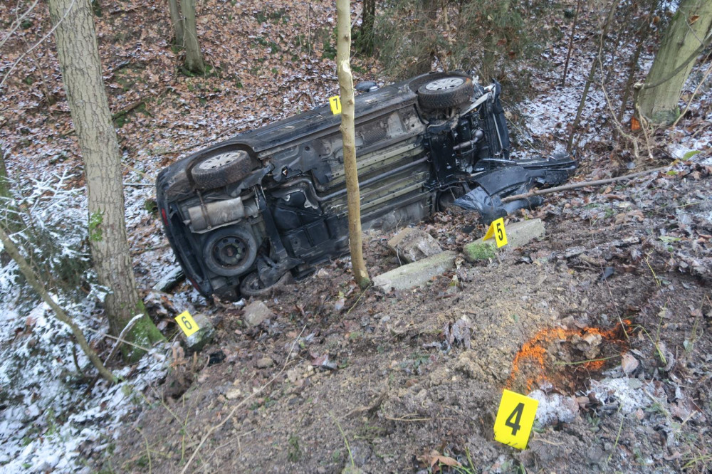 Auto u Železného Brodu skončilo převrácené v příkopu. Řidička jela příliš rychle