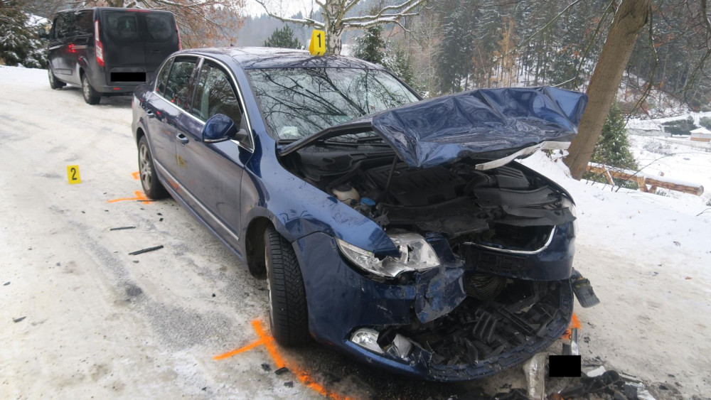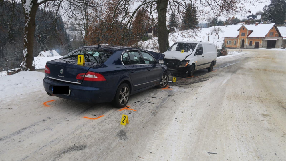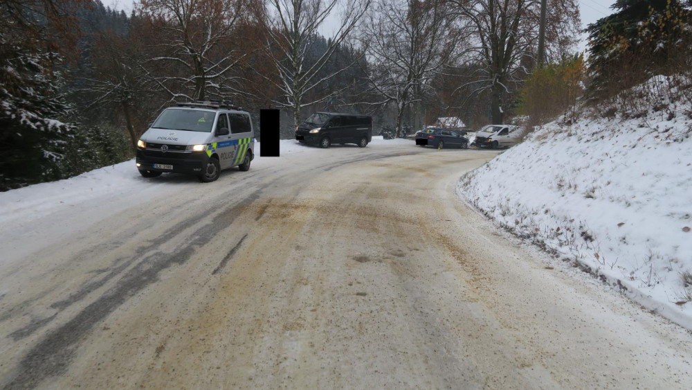 Řidiče na Jablonecku překvapila ledovka, narazil do jiného vozu. Ten dostal pokutu za letní pneumatiky